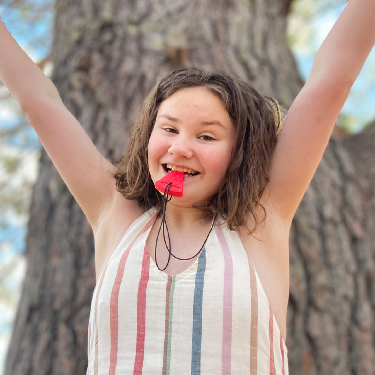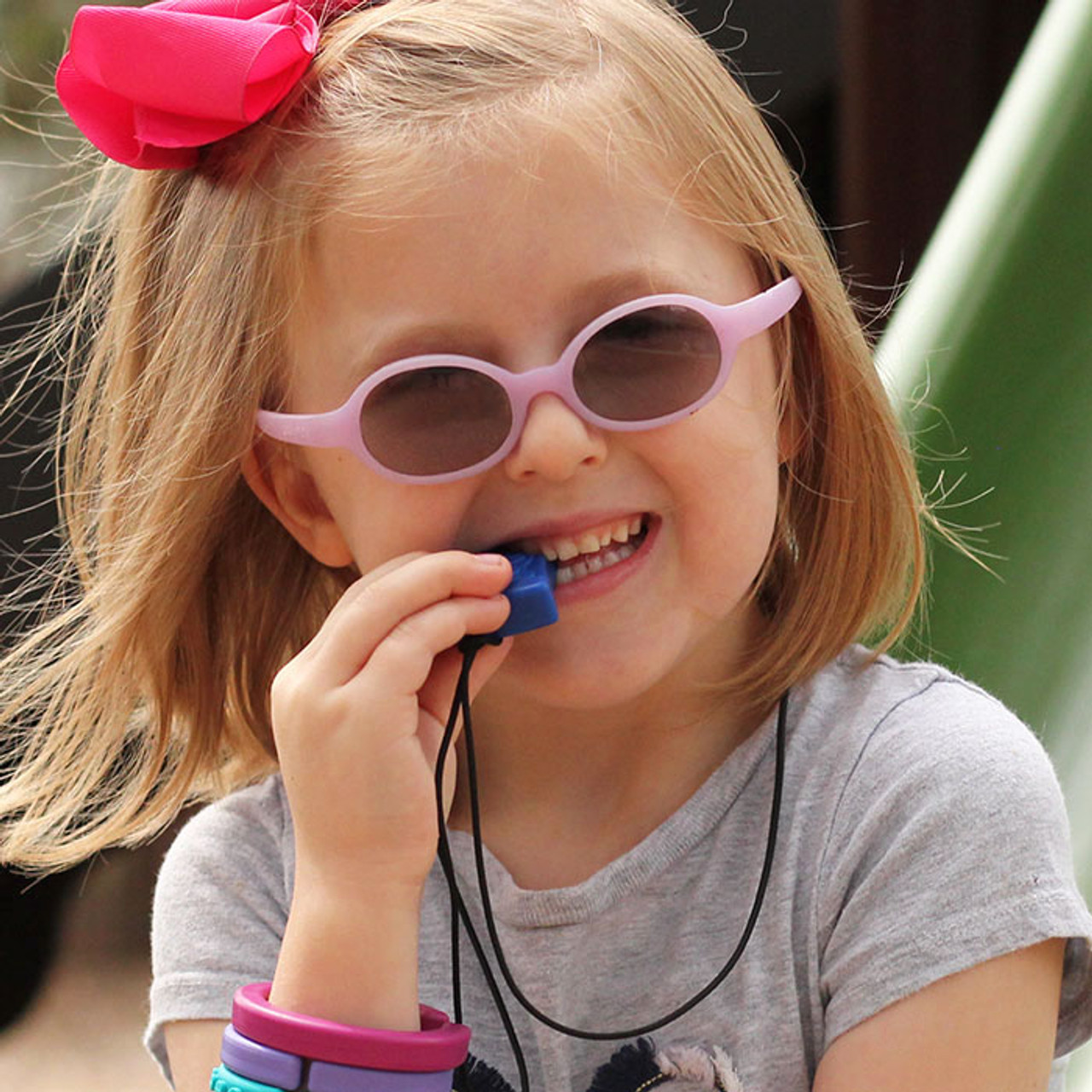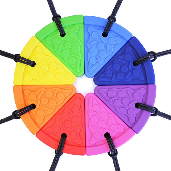 ARK’s Pizza Chew Necklace is a slice of cheesy sensory oral motor fun. Each “slice” measures around 5cm tall and 1.2cm and is a great option for those who prefer chewing with their pre-molars or front teeth. The textured “toppings” provide extra sensory interest and can be used as a safe alternative to chewing on pencils, shirts, fingers or other items to help calm, focus and self-regulate.